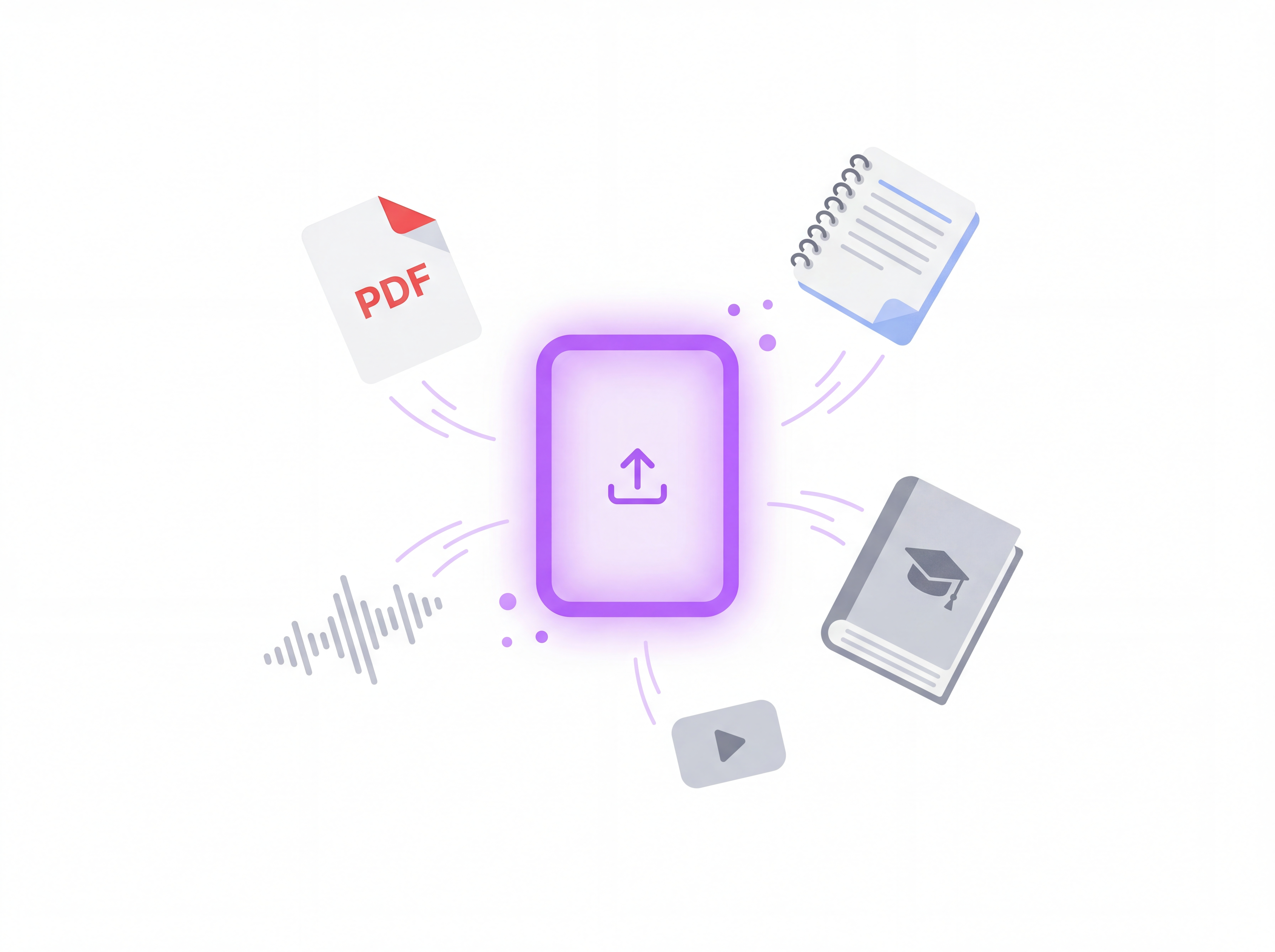 Drop in your notes, textbooks, PDFs, lecture recordings, or just type a topic. Lokii accepts any format and any subject — from organic chemistry to contract law to Mandarin vocabulary.